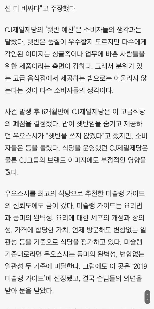 고급식당에서 성의없이 햇반이 말이 되냐고