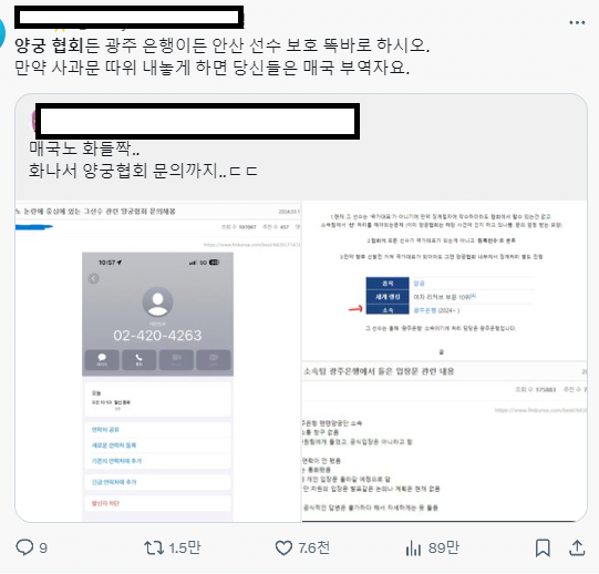 양궁협회,광주은행 안산 안지켜주면 니들은 매국노부역자