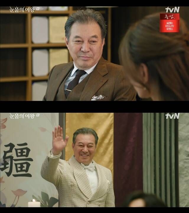 김갑수는 '눈물의 여왕'에서 홍해인의 할아버지이자 퀸즈 그룹 회장 홍만대 역을 맡아 열연했다. /방송 화면 캡처
