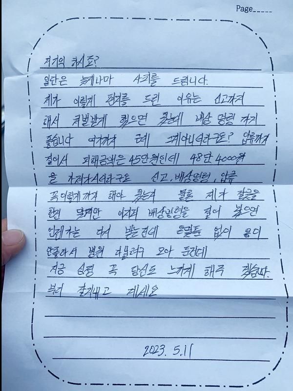 피해자인 A씨는 가해자 B씨로부터 편지 한 통을 받았다.A씨는 지난해 1월 중고 거래 사기를 당해 경찰에 신고했고,결국 가해자 B씨는 재판에서 징역 2년 형을 선고받았다고 한다.조사 결과 B씨는 26명의 피해자로부터 모두 2300만원 상당을 가로챈 것으로 알려졌다.편지는 B씨가 A씨의 집 주소로 보낸 것으로 추정되며, A씨가 공개한 중고 거래 사기 사건 판결문에는A씨를 비롯해 배상명령을 신청한 이들의 이름과 주소 등 개인정보가 고스란히 담겨 있었다.편지에는 "저 기억 하시죠?"라며 "배상명령까지 좋습니다. 그런데 그게 아니더라고요?신고, 배상명령, 압류 꼭 이렇게까지 해야 됐는지. 물론 제가 잘못을 한 것은 맞지만어차피 배상명령을 걸어 놨으면 언젠가는 다시 받는 건데지금 심정 꼭 당신도 느끼게 해주겠습니다. 부디 잘 지내고 계세요"라고 적혀 있었다.A씨는 경찰 신고에 이어 배상 명령 신청은 물론이고 B씨의 영치금 및 근로 장려금에도 압류를 걸었다.결국 수감 중인 B씨는 교도소 영치금을 압류당했다.A씨는 "피해자 신상정보가 범죄자에게 들어간다는 거 자체가 이해가 안 된다.보복 범죄로 큰 사고가 터져야 고쳐질까요"라며"저처럼 사기당해서 경찰에 신고하고 배상명령 신청할 때주소가 공개되니, 위험하지 않을 장소로 주소를 기입하라"고 전했다.이에 A씨는 사기꾼의 협박 편지에 대해 법무부에 민원을 신청했고, 경찰에도 협박으로 고소장을 접수했다.