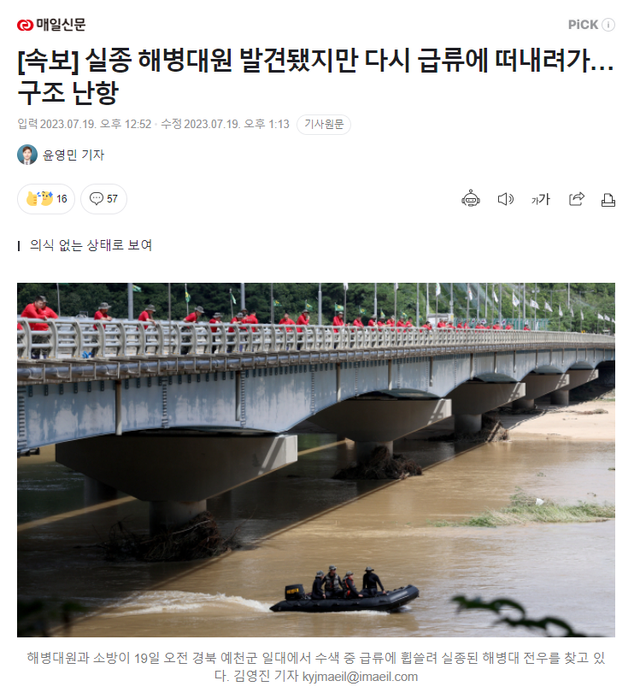 실종된 해병대원으로 추정되는 의식없는 사람을 발견하고 접근하였지만