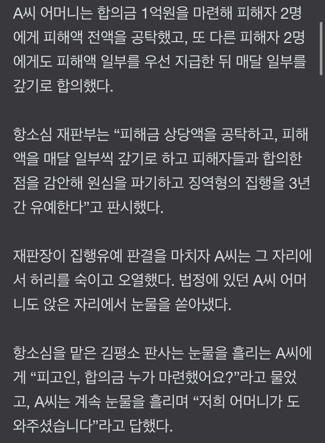 판사가 어머니 은혜 잊지말고 똑바로 살라고 조언