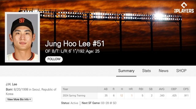 시범경기를 성공적으로 마친 이정후는