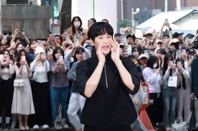 식당에 들어가기 전, 김수현은 취재진들의 요청에 맞춰 다양한 포즈를 취했다. ‘눈물의 여왕’에 맞게 한 손으로 눈물을 표현하는가 하면, “홍해인!”을 외쳐 폭발적 반응을 이끌었다.