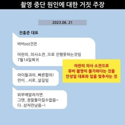 오늘 더기버스에서 바비 뮤비 촬영 무산에 대해 전홍준대표 저격했는데