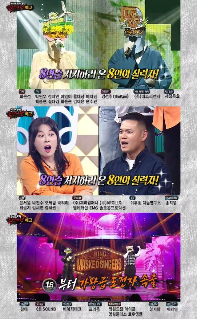 연예인 판정단으로는 '8연승 가왕 동방불패' 손승연을 비롯해 '2연승 가왕 네가 가라 하와이' 홍지민, '1승 가왕 노래왕 퉁키' 이정, '3연승 가왕 인센스' B1A4 산들 등 4인의 가왕 출신과 더불어 '레전드 힙합 전사' 양동근, '국민 혼성그룹' 코요태 신지, '국보급 음색' 박혜경, '만찢 비주얼' 걸그룹 ARTMS(아르테미스) 희진이 출격해 날카로운 추리력을 뽐낸다.