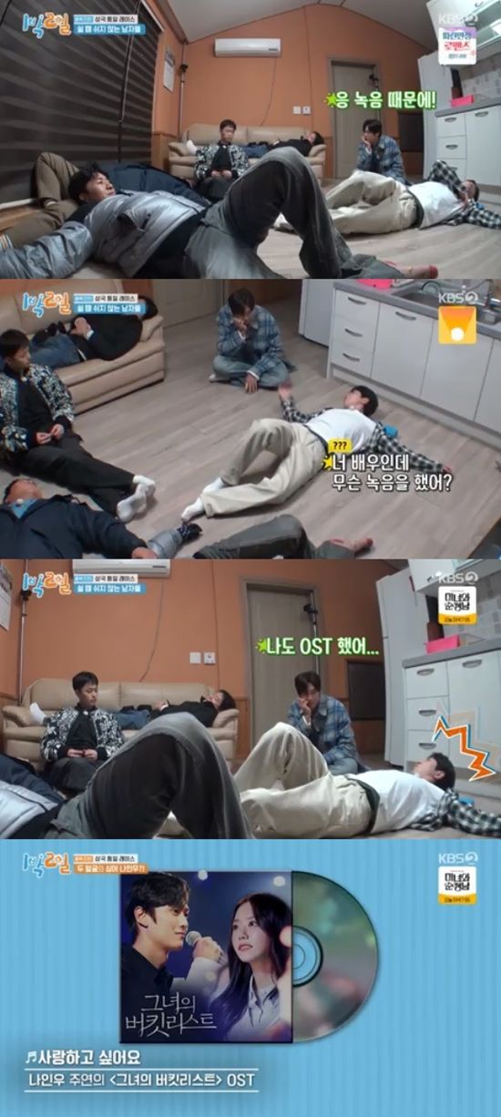 28일 방송된 KBS 2TV '1박 2일 시즌4'에서는 나인우가 OST 경력을 밝히는 모습이 전파를 탔다.