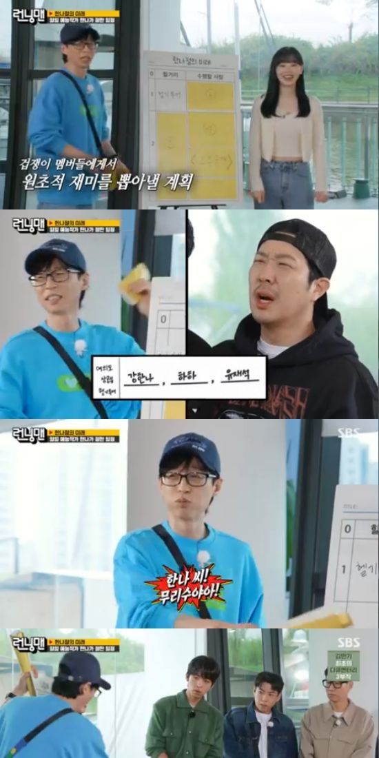 제작진은 '런닝맨' 멤버들에게 오늘의 레이스를 설명하면서 "사전에 강한나 씨가 일일 예능작가가 되어서 멤버들과 하고 싶은 것을 작성했다"고 했다. 강한나는 멤버들과 할 일을 거침없이 적어내려갔다.