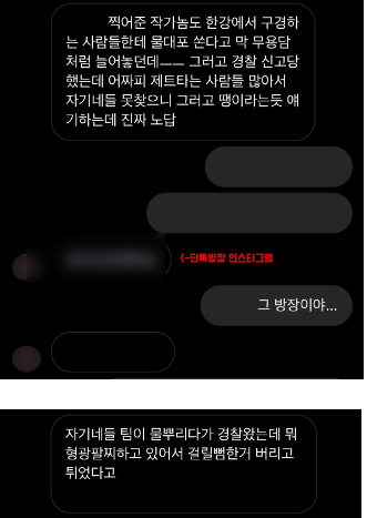 한강에서 구경하는 사람들 물대포 쏘는거 무용담처럼 늘어놓고 경찰신고 당해도 어차피 제트스키 타는 사람 많아서 못 찾으니 땡이라 함.