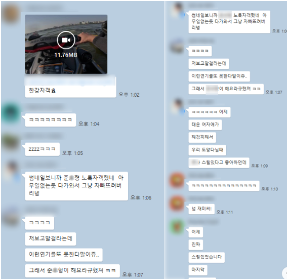 아이한테 물뿌려 부상입힌 제트스키 가해자랑 같은 모임에 있던 사람이 대화내용 공개함