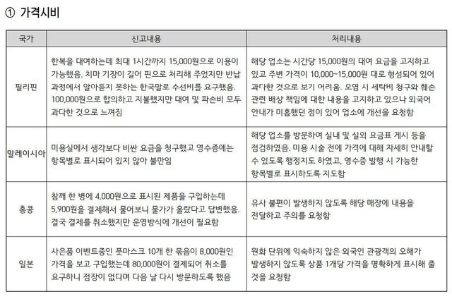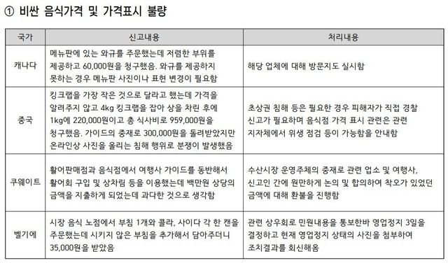 작년, K-음식점 바가지당한 외국인 관광객 신고 사례