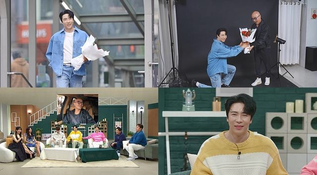 (엑스포츠뉴스 김수아 기자) 가수 에녹이 홍석천에게 무릎을 꿇고 꽃다발을 안기는 프러포즈(?) 포즈를 선보여 홍석천의 광대승천을 유발한다.