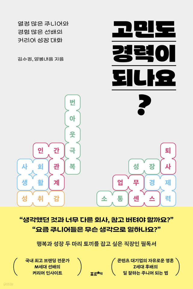 같은 MZ로 묶이고 있지만, M세대와 Z세대는 다른 부분이 많다. 꼰대가 될 것 같아 주저하는 선배와 뭘 해도 ‘MZ’로 불리는 게 부담스러운 Z세대 후배가 솔직하게 털어놓는 커리어 고민을 대화 형식으로 정리했다. ‘이런 것까지 물어봐도 되나?’ 싶은 신입사원이 가장 궁금해하는 18가지 질문을 통해 직장 생활 고민 해결과 나아가 성장의 기회를 엿볼 수도 있을 것이다.