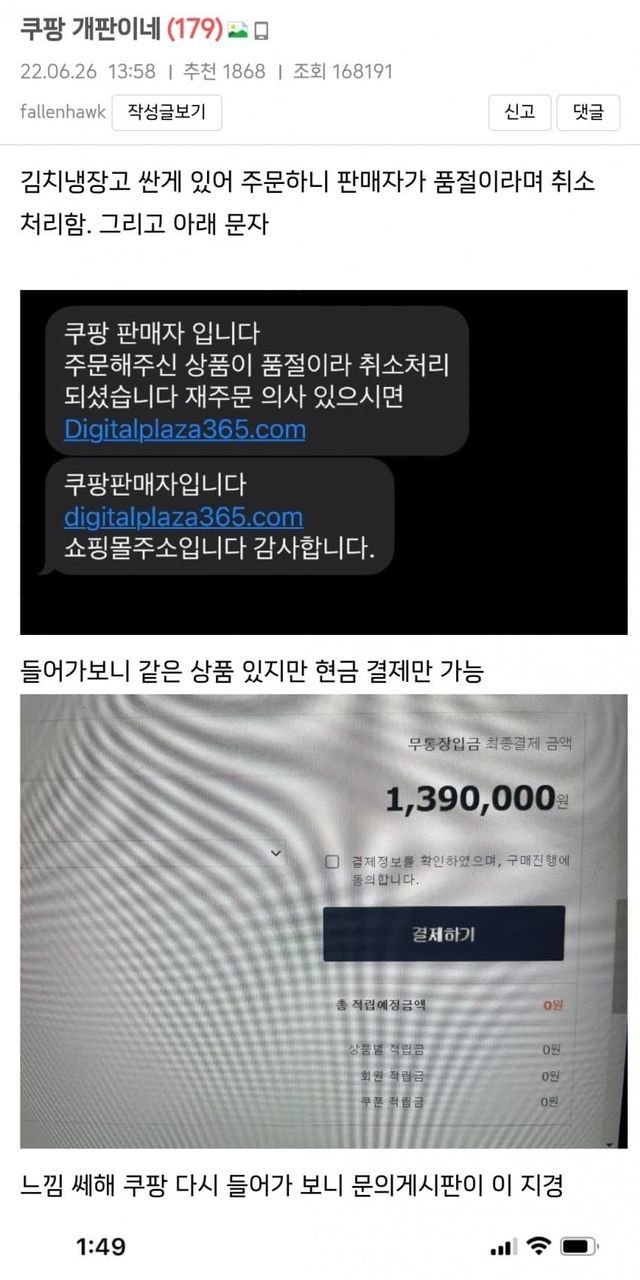 그리고 쿠팡에서는 무조건 사기는 안당할거라고 생각하는 게이들도 있는데 구글에 조금만 검색해봐도 사기 사례가 쏟아져 나옴