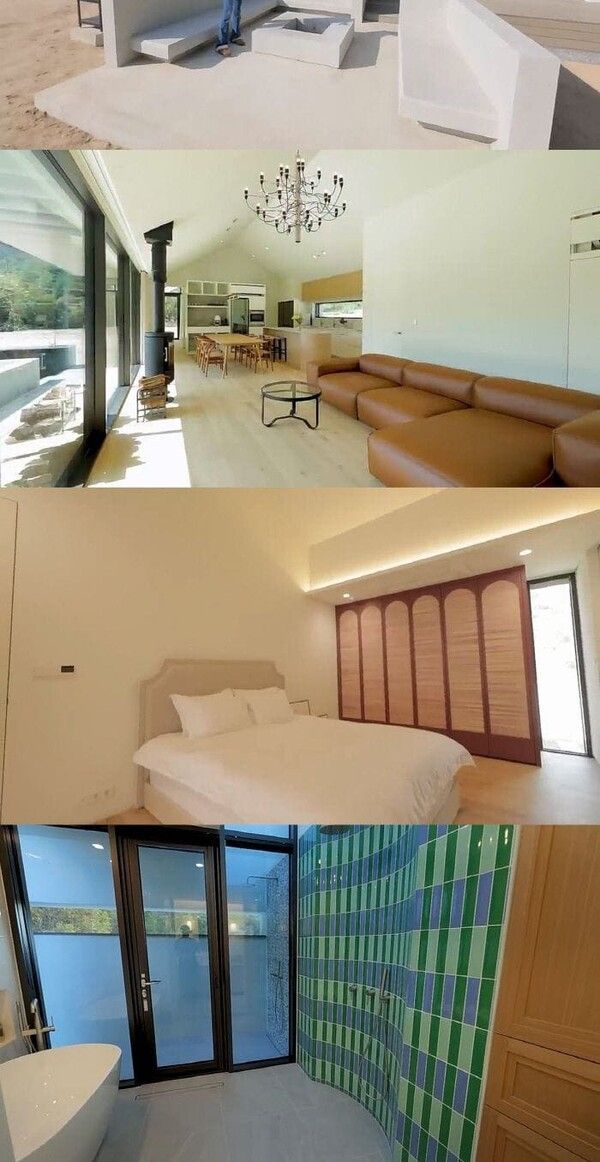 별장 인테리어를 본인이 다 했다고 밝힌 한혜진. "진짜 힘들었다. 거의 1년 반이 걸렸다. 내가 모든 걸 다 골랐다. 심지어 문고리나 후크, 조명 전부 다"라고 강조했다.