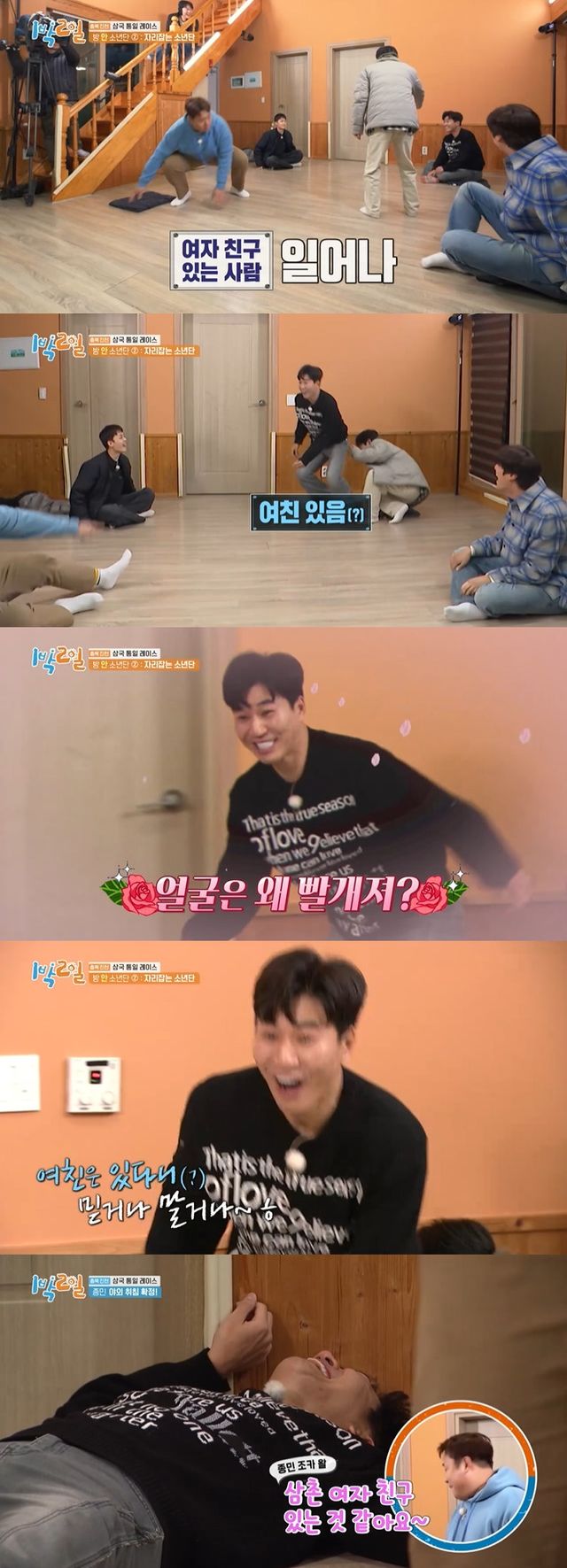 점점 끝나는 시간에 가까워져 멤버들의 마음은 조급해졌고 딘딘의 '여자 친구 있는 사람 일어나'라는 말에 김종민은 혼자 자리에서 벌떡 일어나는 모습을 보였다.