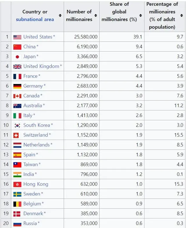 1. 미국 : 25,580,000명