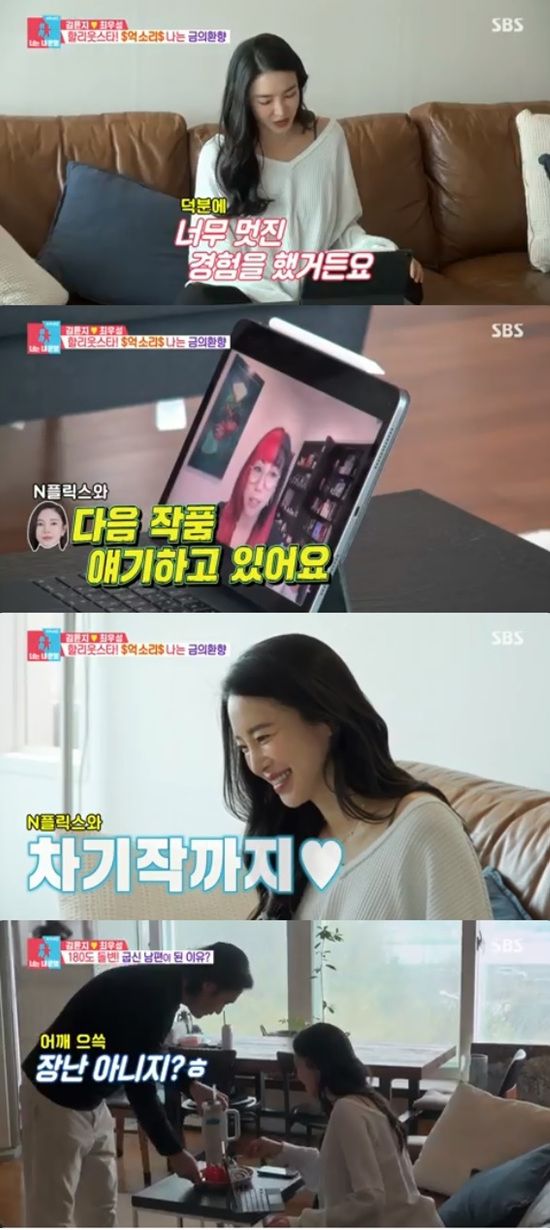 김윤지는 집에서 할리우드 에이전시와 화상통화를 하면서 영화에 대한 현지 반응부터 차기작 얘기까지 회의를 했다.