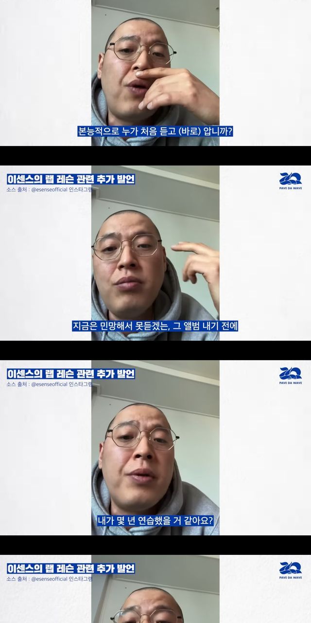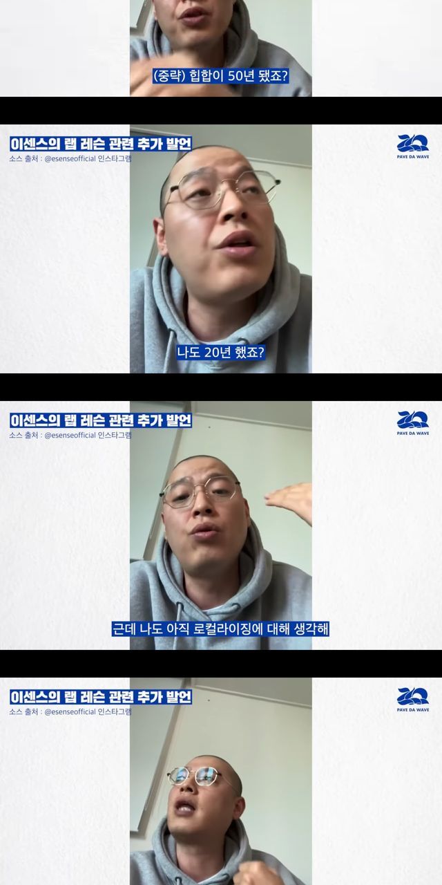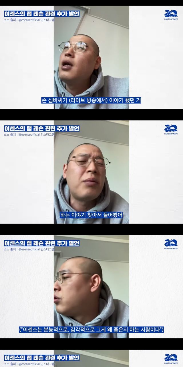 평소 이센스를 존경해와서 인스타로 입장을 밝힘