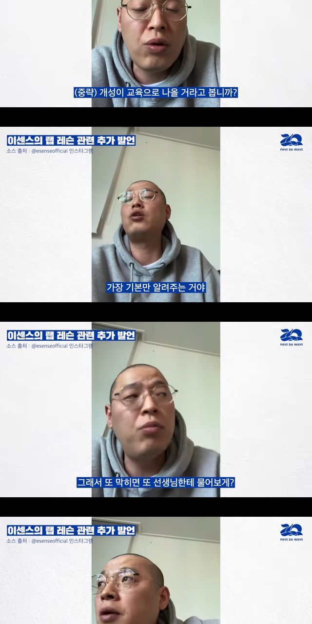 자기 생각엔 유튜브에 랩강좌 올리면 영상 3개에서 끝날 것 같다