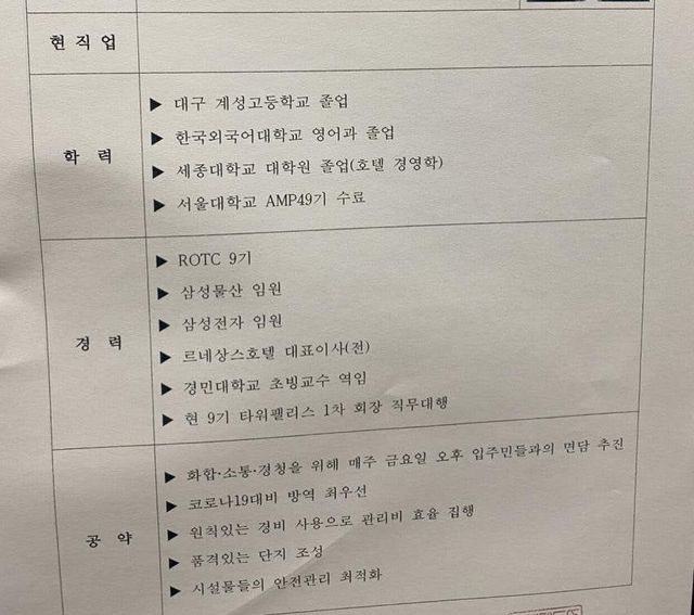 타워펠리스 입주자 선거 레전드 ㄷㄷ