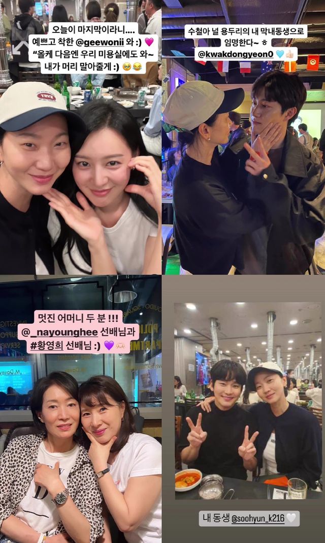 장윤주는 김지원과의 다정한 셀카를 공개하며 "오늘이 마지막이라니.. 예쁘고 착한 김지원과:)"라며 애정을 드러냈다.
