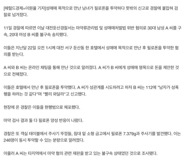 둘다 현행범 체포, 마약 양성
