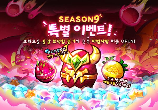 한편, ‘쿠키런: 오븐브레이크’는 시즌9 업데이트를 기념해 다양한 이벤트를 마련했다고 밝혔다. 레전더리 쿠키를 비롯해 보물, 크리스탈, 무지개 큐브 등 푸짐한 보상이 주어지는 ‘시즌9 특별 이벤트’가 진행되며, 이밖에 떼탈출 모드 신규 에피소드 ‘용족 결전의 땅’, 랜덤 챌린지 모드 신규 시즌이 시작됐다.