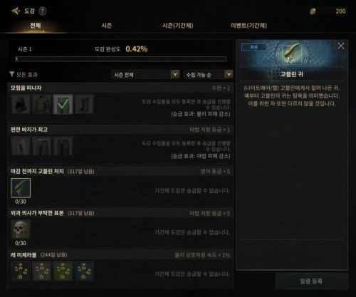 도감을 빠르게 완료하기 위해서는 몬스터나 플레이어를 처치하고 '전리품 획득'을 잊지 말자.