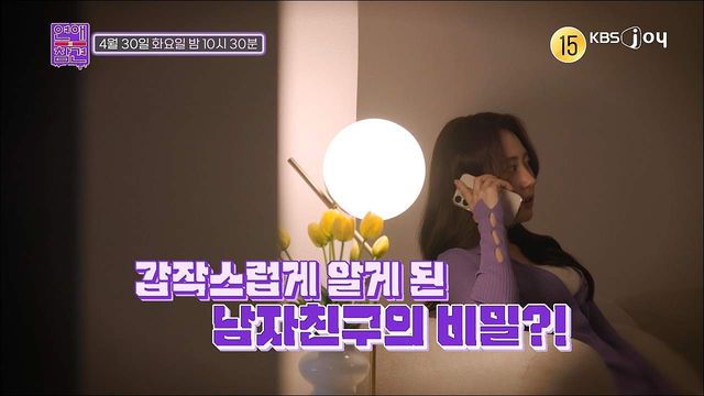 30일 KBS Joy '연애의 참견'에서는 자신의 아파트에서 남자친구와 반 동거를 하던 중 충격적인 진실을 알게 된 고민녀의 사연이 방송된다.