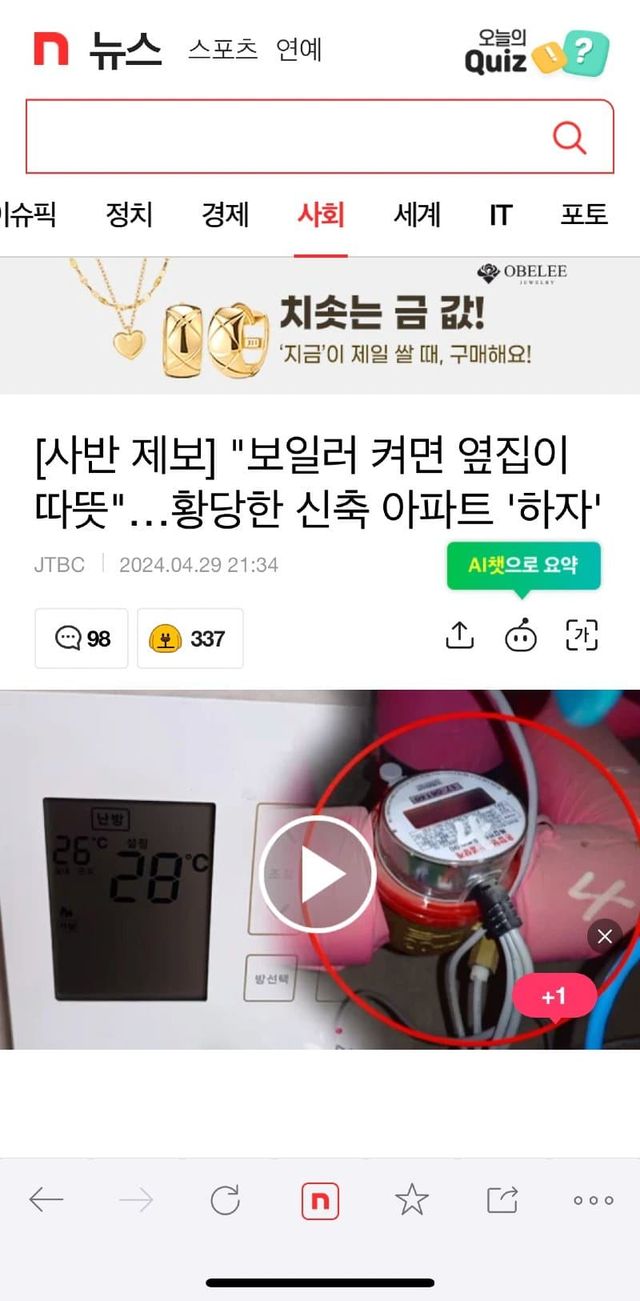 참고로 알고보니 보일러 스위치 배선이 바뀌어서 옆집이 따뜻해지는 저런 문제가 생긴거라 함 ㅋㅋㅋ