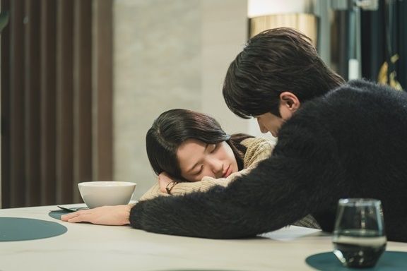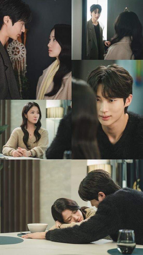 그런가 하면 또 다른 스틸 속 류선재는 고단한 듯 식탁에 엎드려 잠든 임솔의 얼굴을 가까이 들여다보고 있다.
