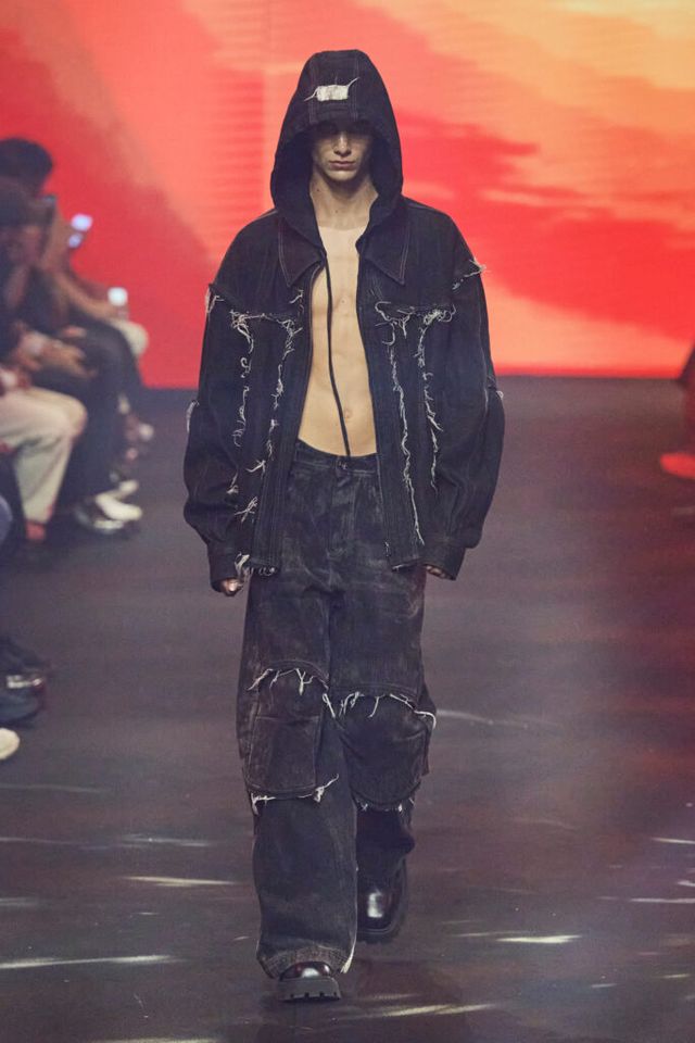 않던 행동도 쉽게 도전한다는 의미의 ‘집단 역학(Group Dynamics)’이다. 강렬한 붉은 조명 아래 데님, 나일론, 코튼과 프린트 원단을 뒤섞은 자유분방한 형태의 룩을 선보이며 역동성을 표현했다.