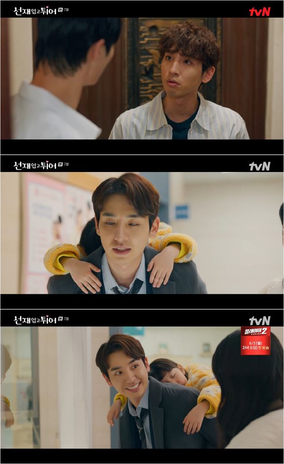 송지호는 29일 방송된 tvN 월화드라마 '선재 업고 튀어'(극본 이시은, 연출 윤종호, 김태엽) 7회에서 듬직한 두 아이의 아빠로 변신, 그동안 티격태격 '톰과 제리' 케미를 보여준 이현주(서혜원 분)의 남편으로 등장했다.