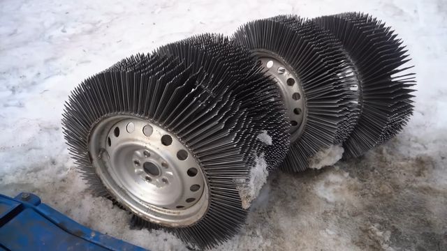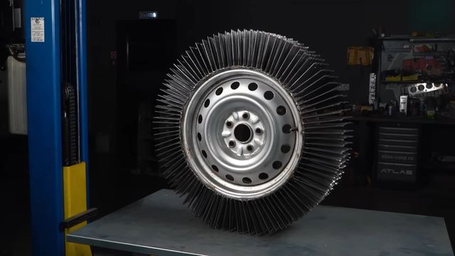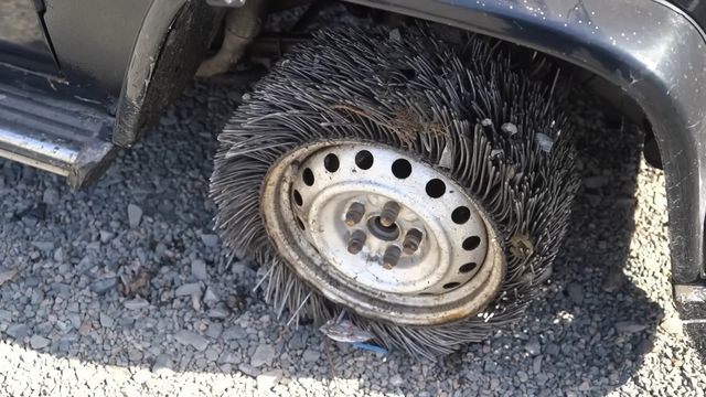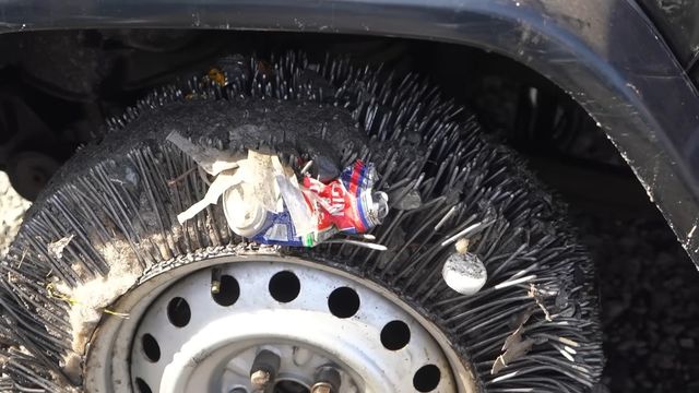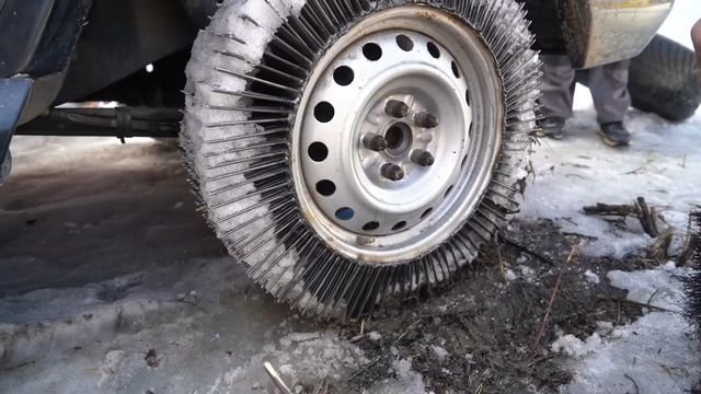 시베리아 남부지역에서 활동하는 유튜브 채널 ‘가라지 54’는 고무 타이어 대신 약 1만 2000개의 못(길이 15cm)을 사용해 메르세데스 벤츠 G바겐이 오프로드 주행을 할 수 있도록 4개의 스노타이어를 제작했다.