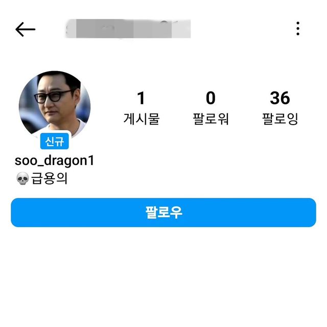 김수용은 30일 오전 "사칭계정 팔로우 신청 오면 차단하셔요 DM 오면 쌍욕을 해주셔요"라는 글과 함께 사진을 게재했다.