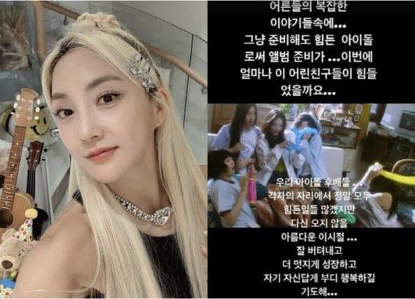 바다는 30일 자신의 인스타그램 스토리에 뉴진스의 사진을 올리며 "어른들의 복잡한 이야기들 속에 그냥 준비해도 힘든 앨범 준비가 얼마나 힘들었을까"라고 마음 아픈 글을 남겼다.