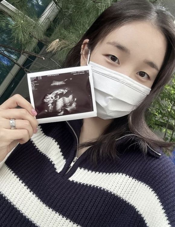 공개된 사진에는 초음파 사진을 들고 있는 백아연의 모습이 담겨 있다.