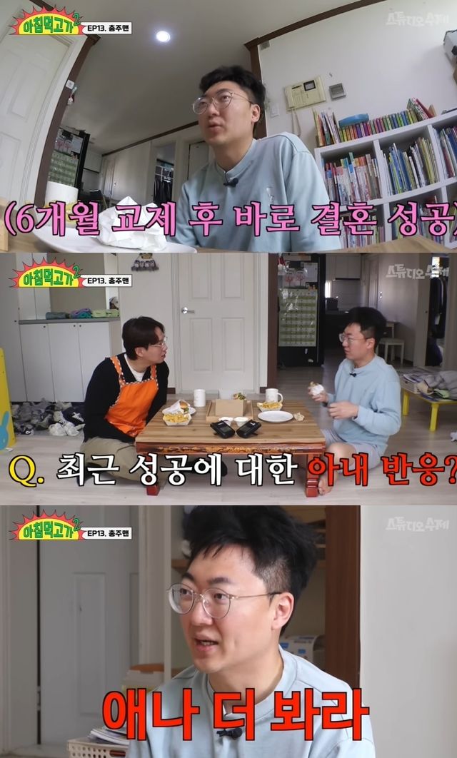 이에 충주맨은 "(공무원) 동기였는데, 와이프가 먼저 나를 좋아해줬다"고 말했다.