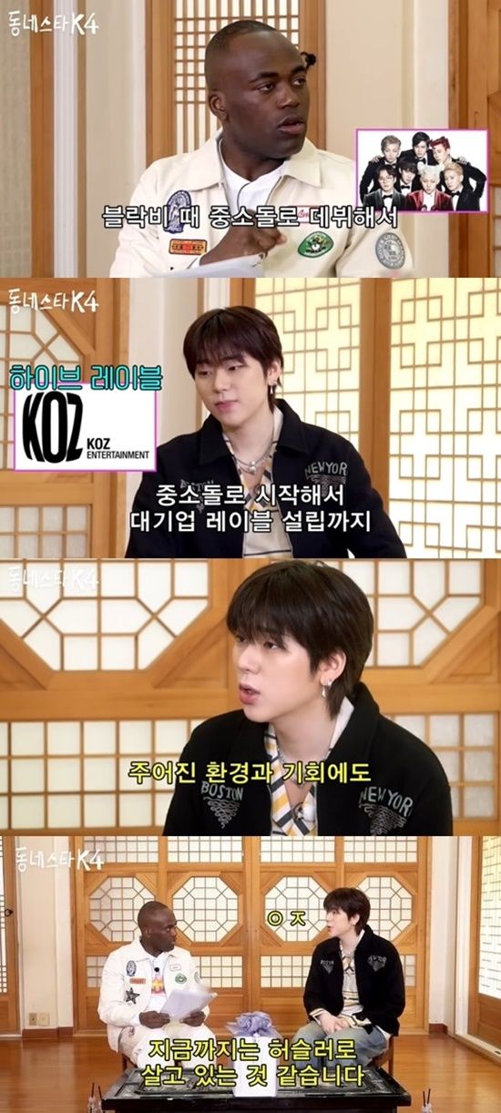 지코가 데뷔했을 당시 블락비는 소위 중소 기획사라고 불리는 회사에 소속돼있었고, "블락비 때 중소돌로 데뷔하지 않았냐"는 조나단의 말에 "우리(블락비)는 중소도 아닌 곳에서 시작했다. 거의 맨땅이었다"고 솔직하게 말했다.