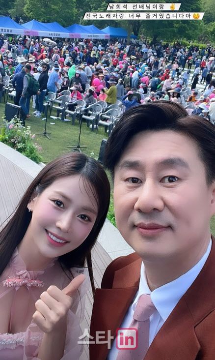 공개된 인증샷에서 강예슬은 ‘전국노래자랑’ MC 남희석과 함께 포즈를 취하고 있다. 강예슬은 사진과 함께 “남희석 선배님과 전국노래자랑 너무 즐거웠습니다”라고 멘트를 남겼다.