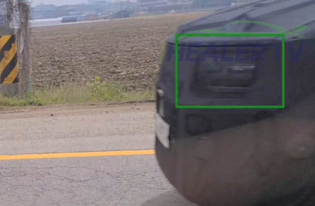 측면에서 볼 때도 헤드라이트는 위장막으로 가렸지만, 싼타페와 유사하게 네모난 디자인인 것을 확인할 수 있다.