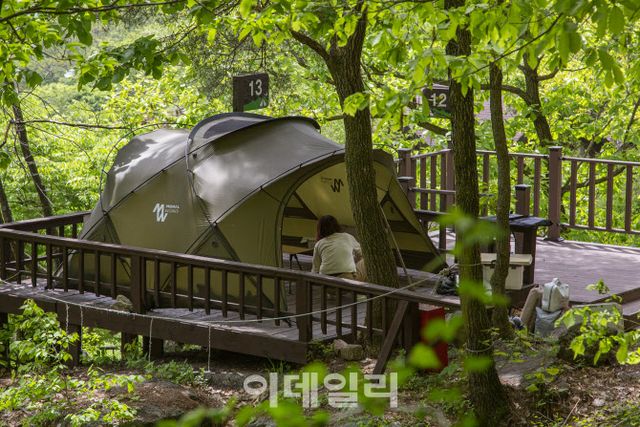 이용요금은 주말 기준 야영데크 1만5000원이다. 경기도 양평군 양평읍 약수사길 78-14.