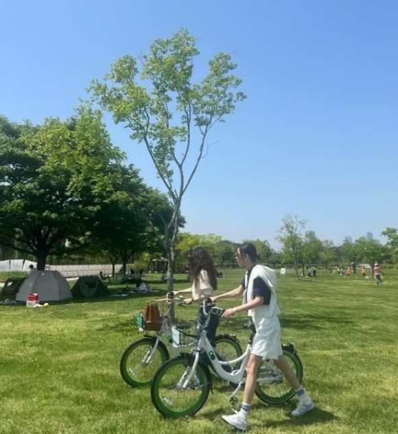 공개된 사진에는 피크닉을 즐기고 있는 두 사람의 모습이 담겼다. 화보 같은 착장과 분위기가 눈길을 끈다.