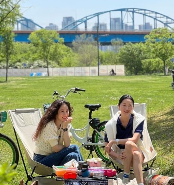 최근 정려원은 자신의 SNS에 장윤주와 함께 찍은 사진을 게재했다. 이어 "윤주 언니와 피크닉"이라는 글을 달았다.