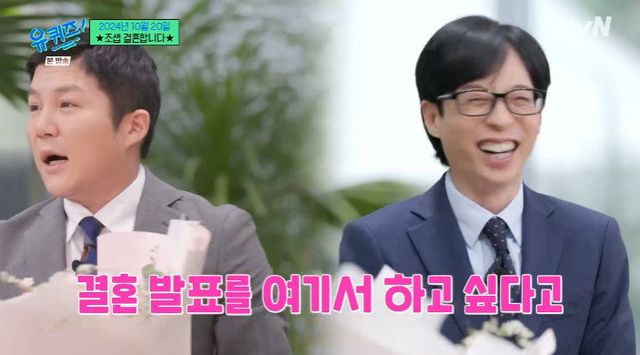 조세호는 1일 방송된 tvN ‘유퀴즈 온더 블럭’에서 “좋은 소식이 있으면 ‘유퀴즈’에서 인사드리겠다고 말씀드렸는데 날짜가 잡혔다. 10월 20일에 결혼한다”고 발표했다. 이에 유재석은 “드디어 ‘(결혼) 전제’를 떼고 결혼하네”라며 “작가들이 지금 눈물을 흘리고 있다. 한 작가는 충격을 받고 앓아누웠다”고 거짓말로 분위기를 유쾌하게 만들었다.