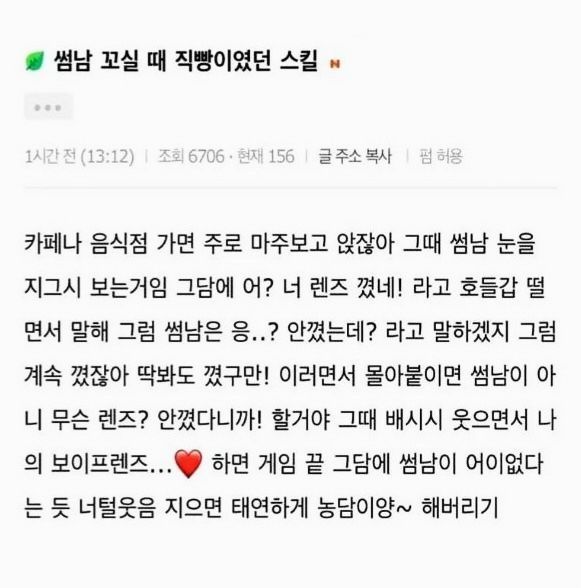 썸남 꼬실 때 직빵이었다는 스킬