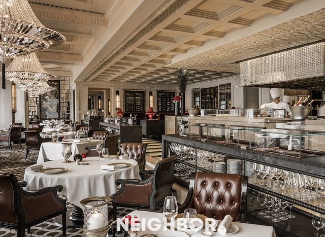 6층에 위치한 ‘카프리스(Caprice)’는 스타 셰프 기욤 갈리오(Guillaume Galliot)가 전개하는 미쉐린 3스타 프렌치 레스토랑. 오픈 키친을 중심으로 큼직한 샹들리에와 벽에 거울과 함께 배치한 알폰스 무하의 작품 등으로 로맨틱한 매력을 담은 인테리어가 인상적이다. 특히 수십 종의 와인을 보관하는 와인셀러 한가운데 위치한 셰프스 테이블은 특별한 이벤트 공간으로 활용하는데, 그 안으로는 갖가지 치즈를 모아둔 별도의 냉장 공간도 있다. 런치 코스에서는 프랑스 루아르 계곡에서 공수한 화이트 아스파라거스와 그린 아스파라거스, 모렐 등 향과 식감이 압도적인 재료를 조화롭게 담은 전채 메뉴는 물론, 흰살생선을 넣은 콩소메, 페킹덕을 커다란 주물냄비에서 훈연한 다음 슬라이스해 당근, 감귤 등과 함께 즐기는 메인 요리, 초콜릿 밀푀유 등이 이어졌다. 하이라이트는 ‘샤토 디켐’ 앰배서더 레스토랑다운 샤토 디켐 페어링 코스. 6L 보틀에 든 샤토 디켐 2014를 한 잔씩 곁들이니 이보다 좋을 수 없었다. 레스토랑 맞은편에는 다양한 와인 리스트와 프랑스에서 직수입한 치즈를 맛볼 수 있는 ‘카프리스 바’가 있다.
