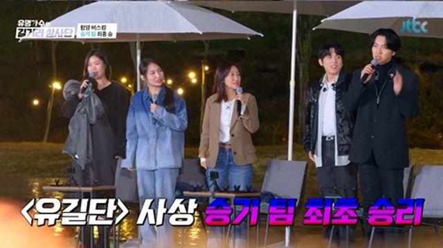 1일 방송된 JTBC ‘유명가수와 길거리 심사단’(약칭 유길단)에서는 함양 버스킹에서 2 대 0으로 규현 팀에 지고 있던 승기팀이 역전승을 거두며 첫 승리를 획득했다. 무엇보다 두 팀의 스코어가 동점인 승부처에서 이승기와 규현의 팀장 전이 펼쳐지며 현장의 분위기를 한껏 끌어올렸다.
