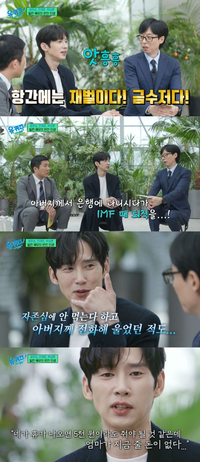 이날 유재석은 한때 화제였던 법대, 의사, 변호사 출신인 박성훈의 집안을 언급하며 "재벌, 금수저라는 오해를 많이 받으셨다"고 말했다.